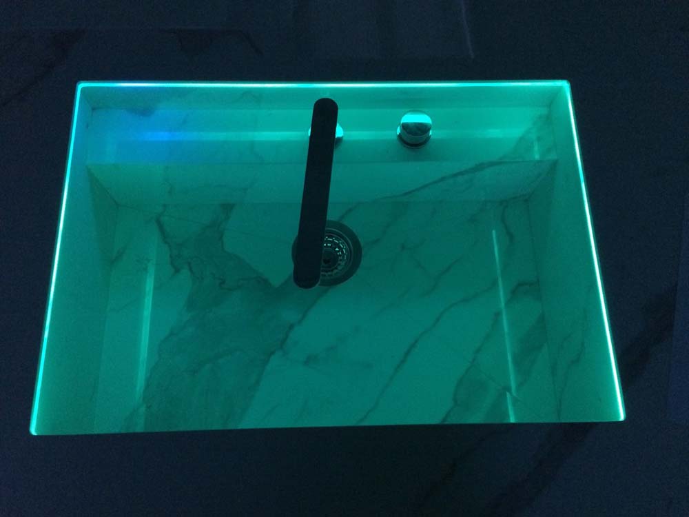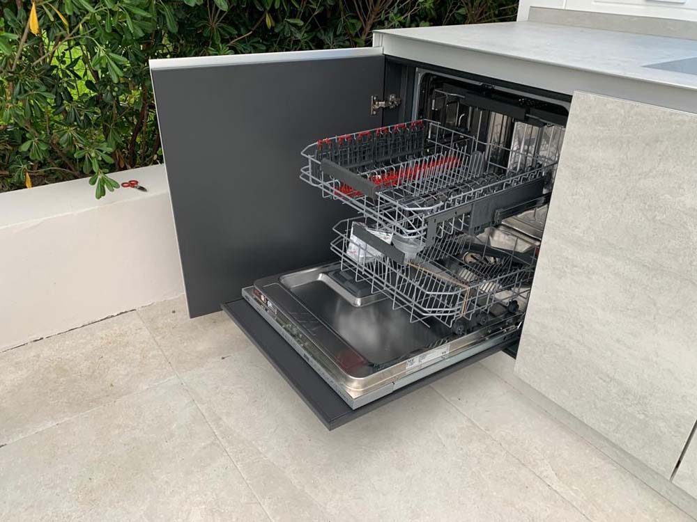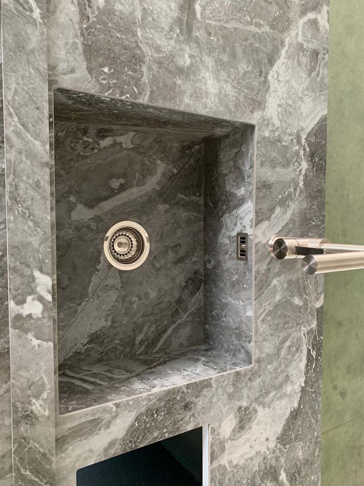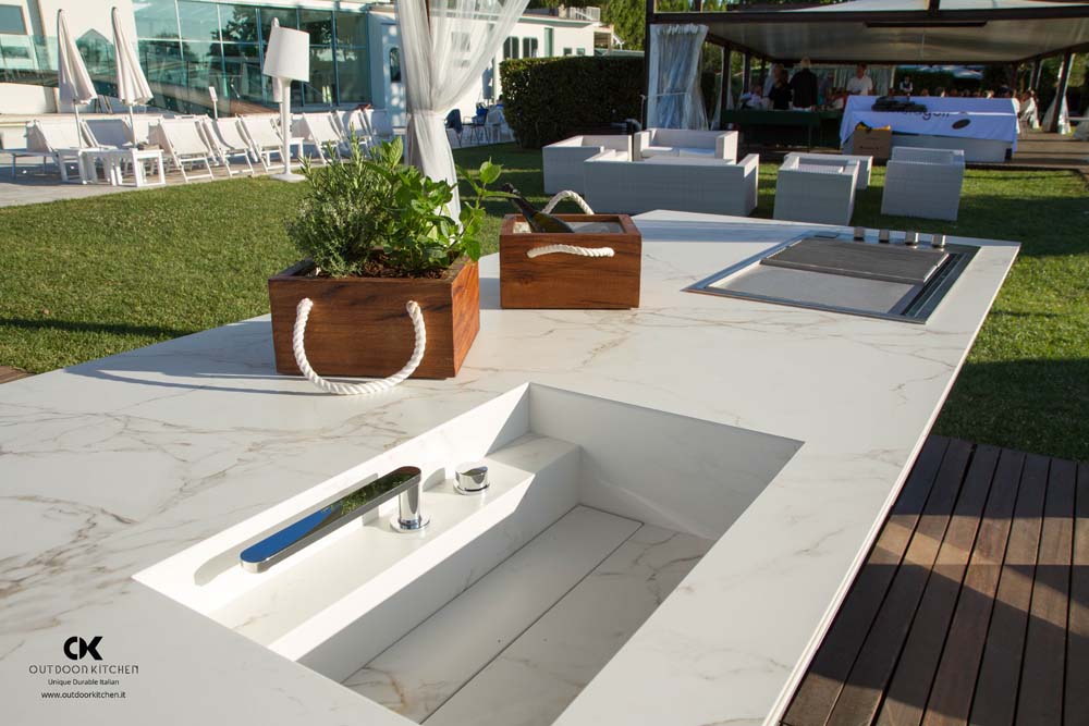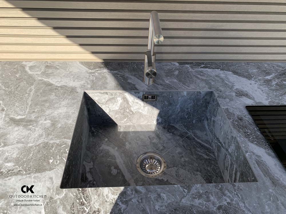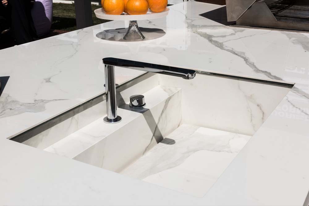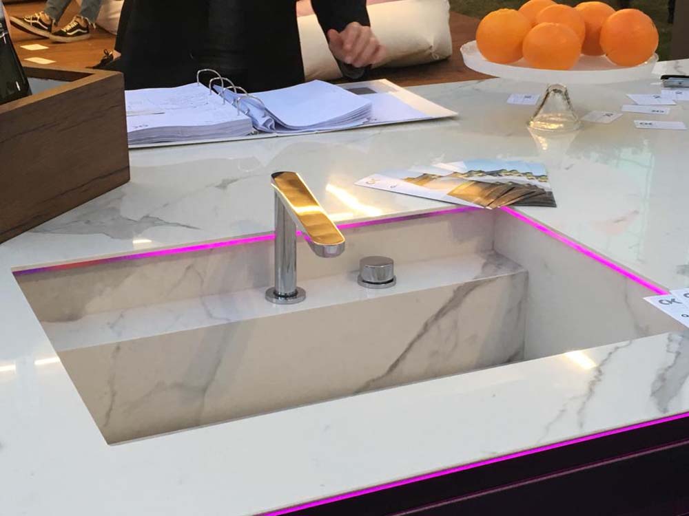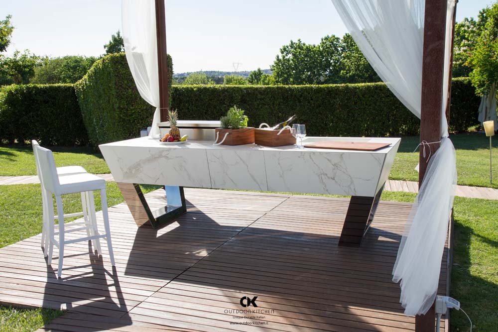Diverse tipologie di oggetti con lo stesso materiale della cucina agli armadi dal soffitto alle pareti e mobili contenitori.