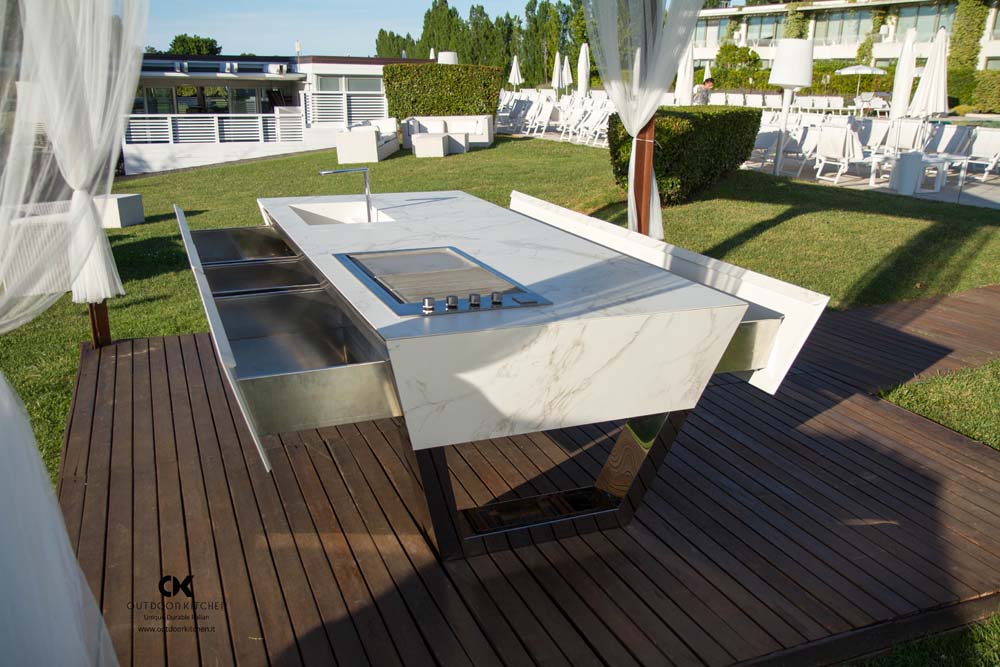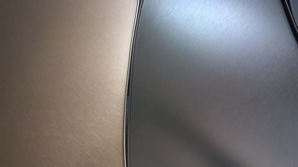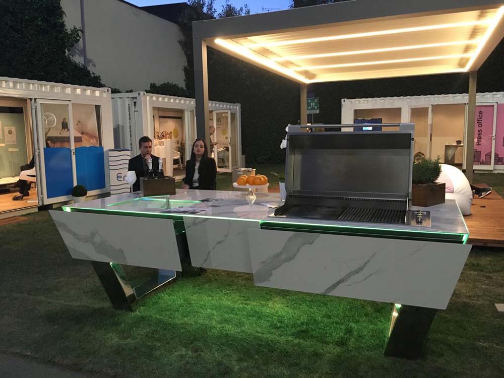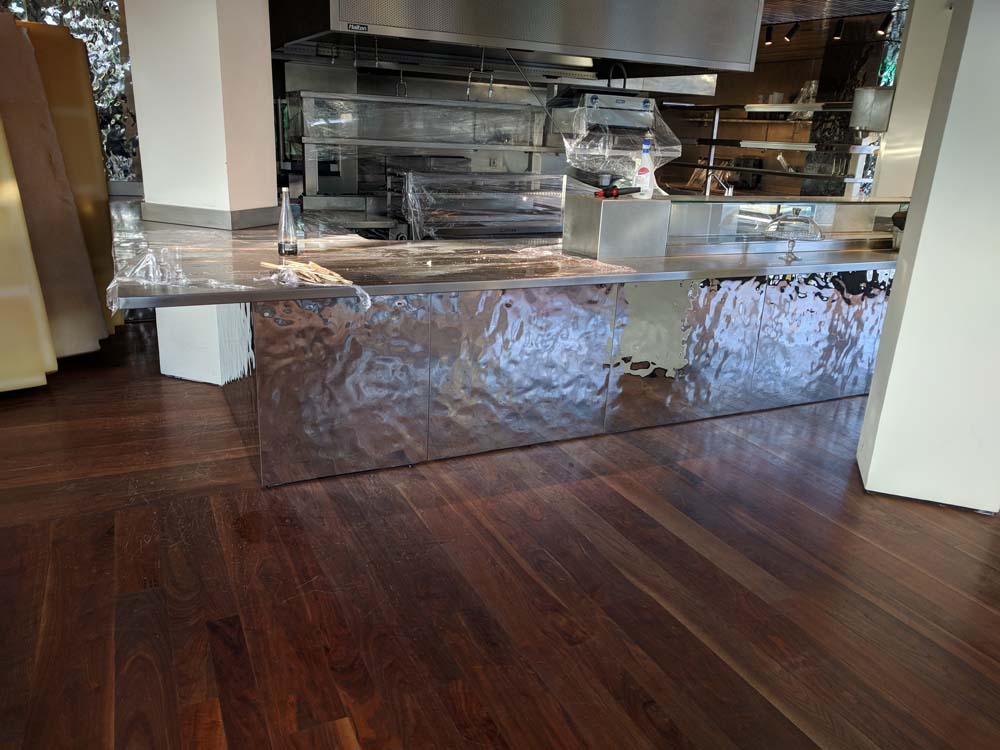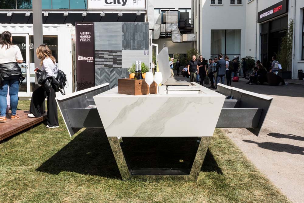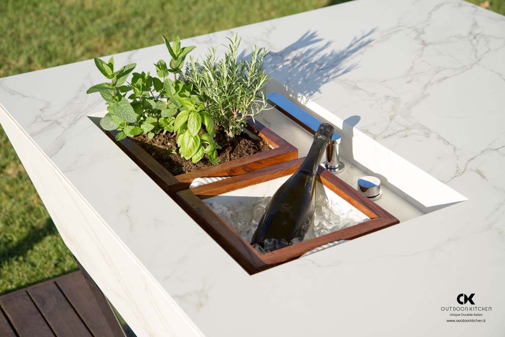 Acciaio inox martellato, legno, telaio in ferro verniciato
